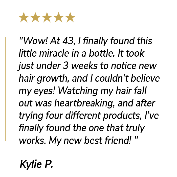 "Wow! At 43, I finally found this little miracle in a bottle. It took just under 3 weeks to notice new hair growth, and I couldn't believe my eyes. Watching my hair fall out was heartbreaking, and after trying four different products, l've finally found the one that truly works. My new best friend! "