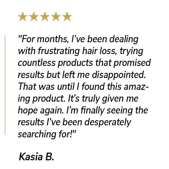"For months, I've been dealing with frustrating hair loss, trying countless products that promised results but left me disappointed. That was until I found this amazing product. It's truly given me hope again. I'm finally seeing the results l've been desperately searching for!"