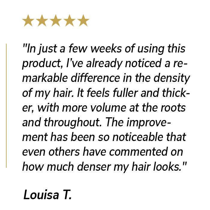 "In just a few weeks of using this product, I've already noticed a remarkable difference in the density of my hair. It feels fuller and thick-er, with more volume at the roots and throughout. The improvement has been so noticeable that even others have commented on how much denser my hair looks."
