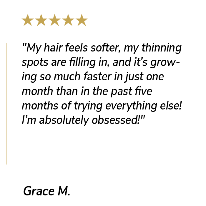"My hair feels softer, my thinning spots are filling in, and it's growing so much faster in just one month than in the past five months of trying everything else! I'm absolutely obsessed!"